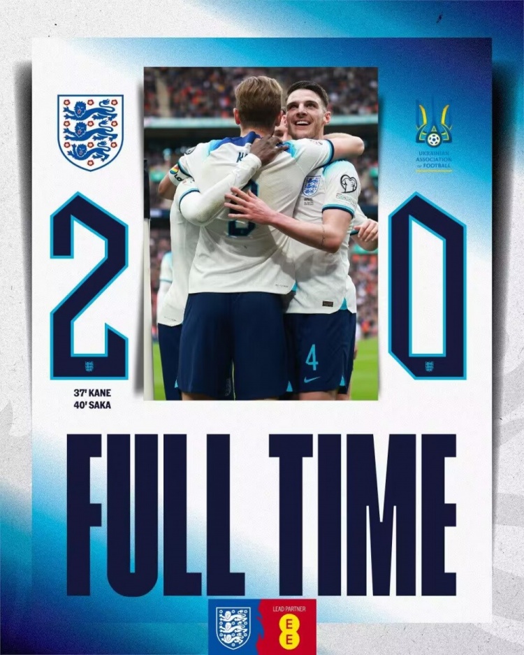 3月27日讯 北京时间3月27日0点,欧洲杯预选赛C组英格兰对阵乌克兰。上半场,萨卡助攻凯恩打破僵局后自己打进一脚世界波,下半场,加拉格尔错失一次不错机会。全场比赛结束,英格兰2-0乌克兰。