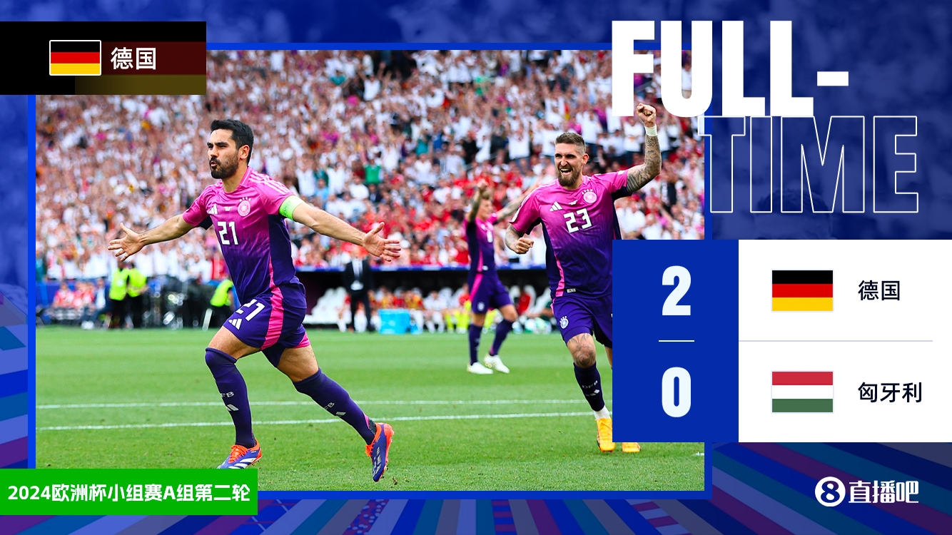 6月20日讯 北京时间6月20日凌晨0:00,欧洲杯小组赛A组第二轮,德国对阵匈牙利。上半场京多安助攻穆西亚拉进球,索博斯洛伊任意球造险,罗兰-绍洛伊头球破门因越位被吹,德国队暂1-0匈牙利;下半场米特尔施塔特送出助攻,京多安破门,最终德国队2-0匈牙利,暂居小组第一,已经提前锁定一个出线名额。
