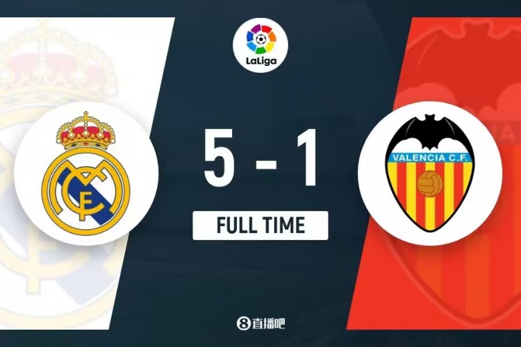 下半场补时4分钟。最终全场比赛结束,皇马5-1瓦伦西亚。
