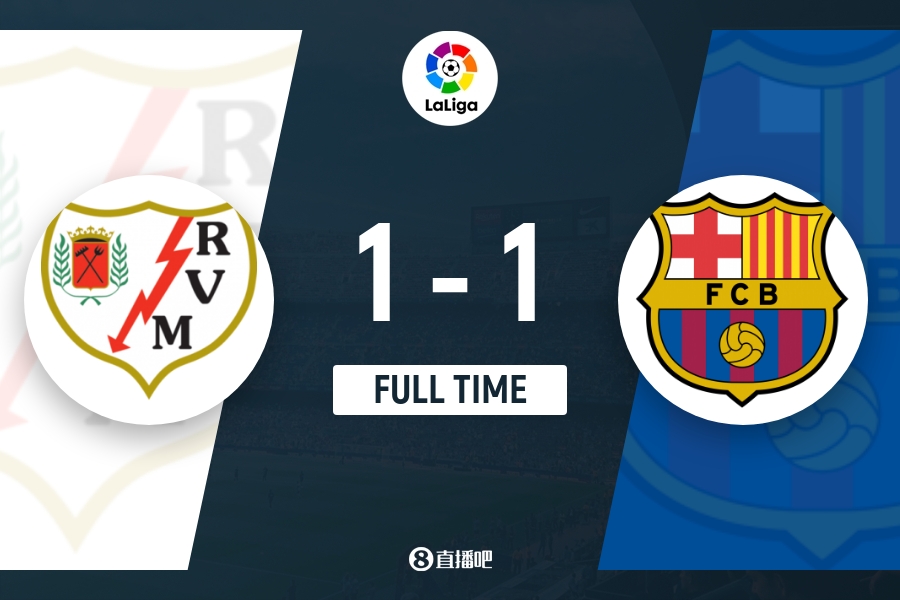 全场比赛结束,巴塞罗那1-1巴列卡诺。