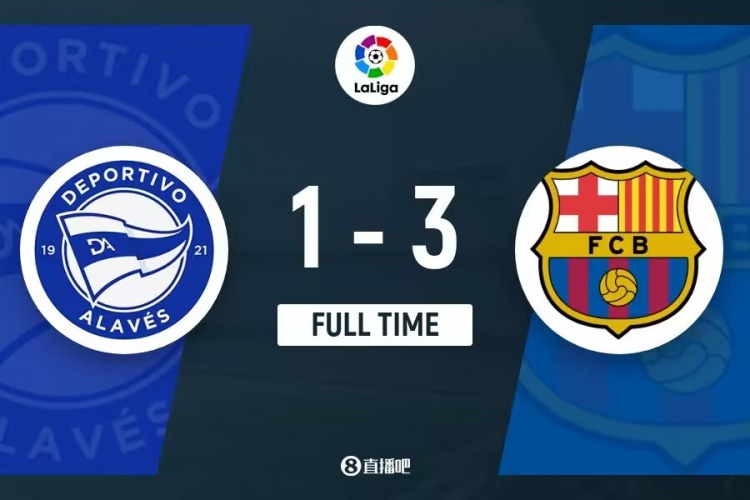 西甲-巴萨3-1阿拉维斯先赛升第三 罗克替补13分钟破门+连吃2黄