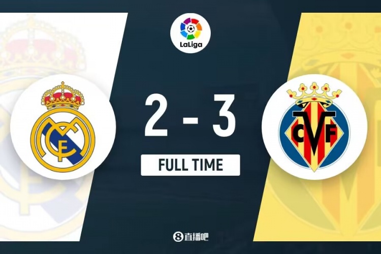 全场比赛结束,最终皇马2-3比利亚雷亚尔。