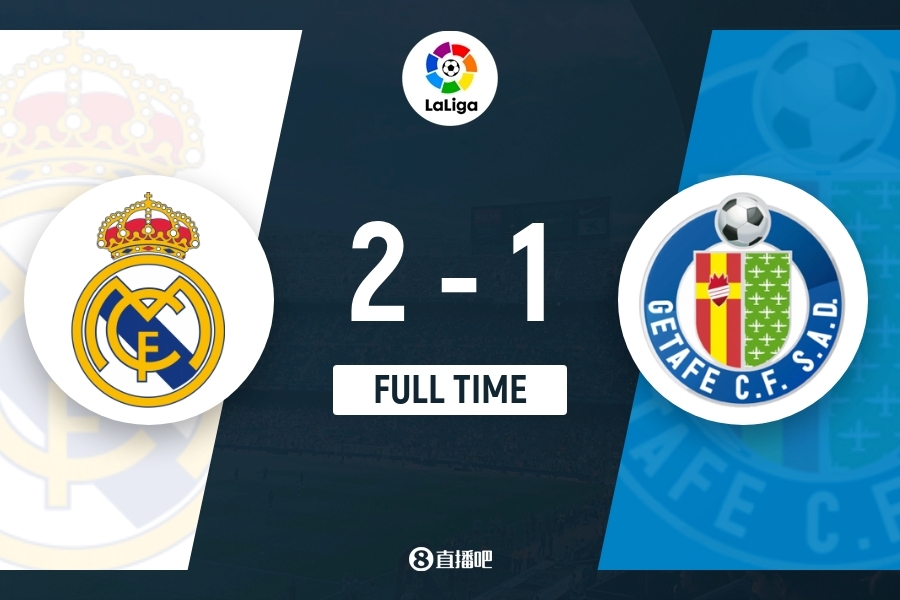 下半场补时9分钟。最终全场比赛结束,皇马2-1赫塔费。