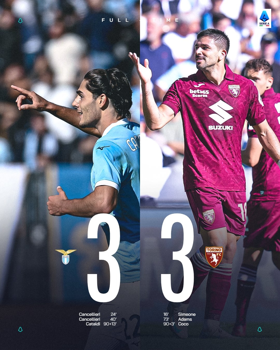 神剧情!都灵93分钟3-2准绝杀,拉齐奥103分钟点射3-3反绝平都灵