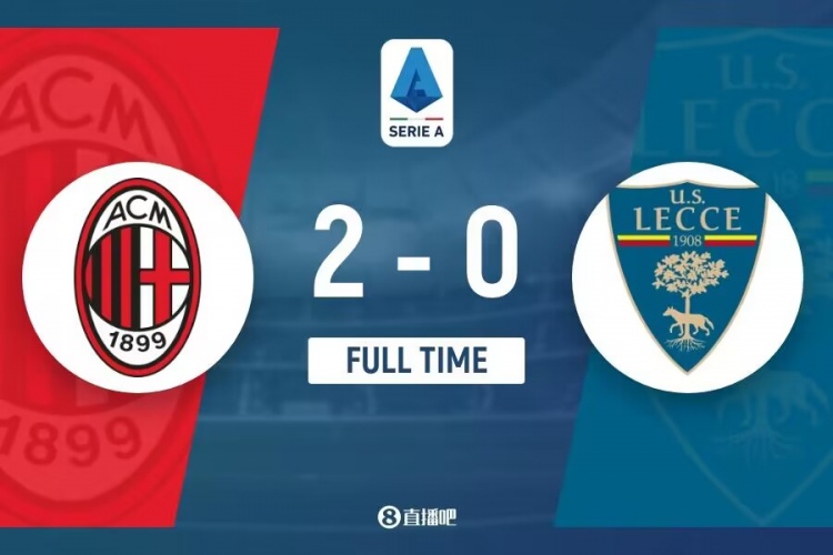 下半场伤停补时4分钟,全场比赛结束,最终AC米兰2-0击败莱切。