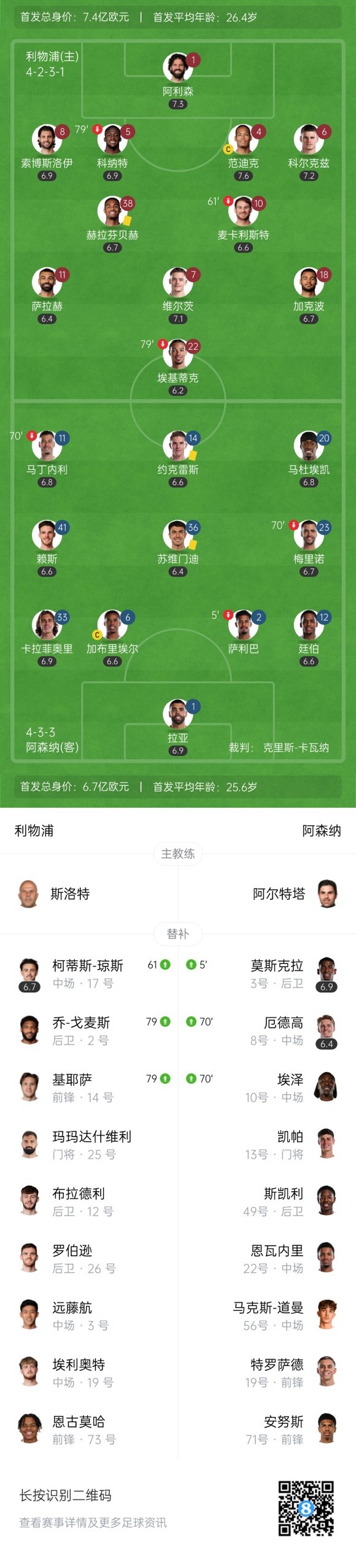 第82分钟,利物浦打破僵局!利物浦中路定位球机会,索博斯洛伊直接打门世界波球进,利物浦1-0阿森纳。↓