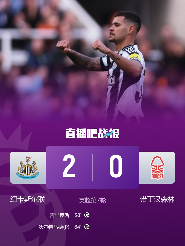 送对手9场不胜!纽卡2-0森林 吉马良斯世界波+造点沃尔特马德点射