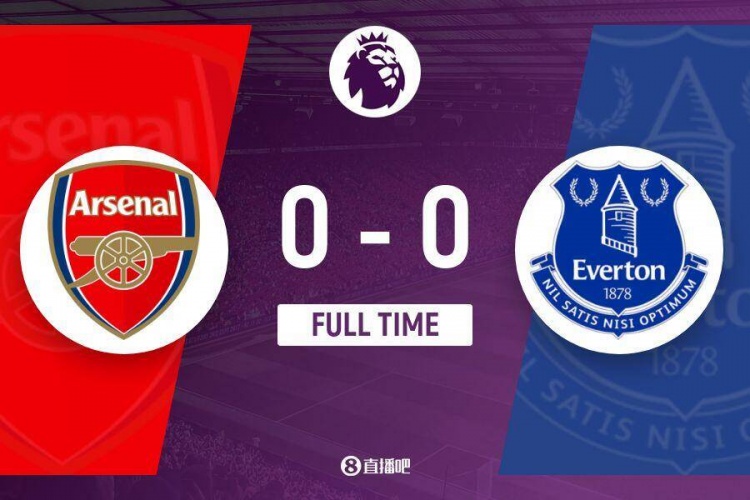 全场比赛结束,阿森纳0-0埃弗顿。