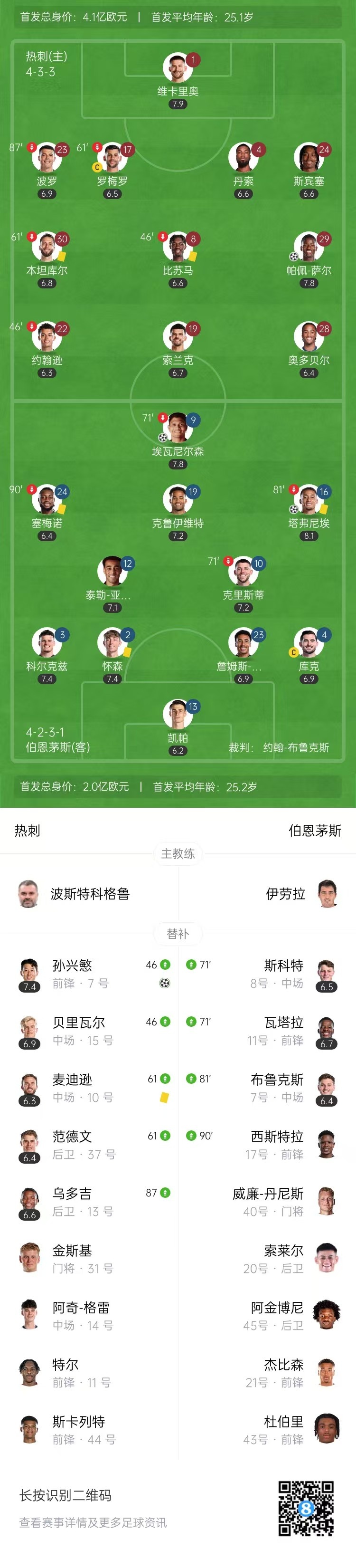 第41分钟,热刺传球失误被伯恩茅斯打出反击,科克兹左路长途奔袭后送出传中,塔弗尼埃后点包抄铲射破门,伯恩茅斯1-0热刺。↓