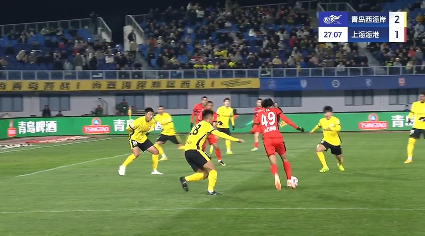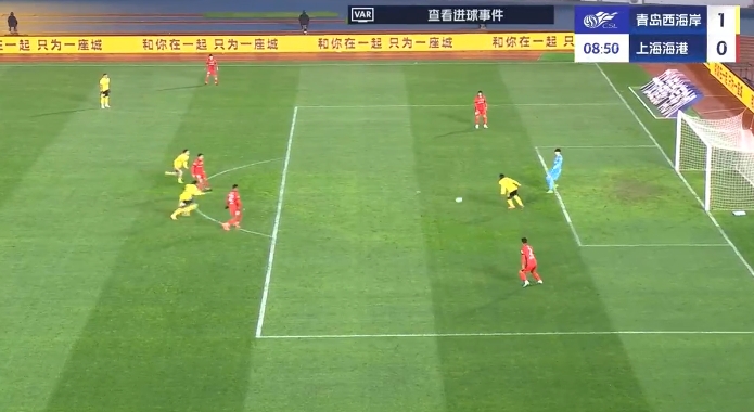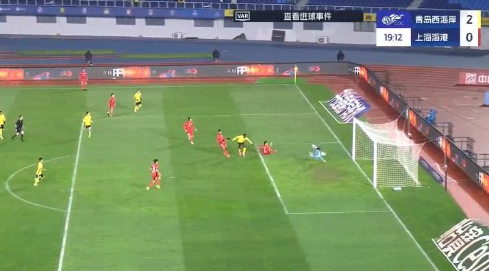 海港后防被断再次丢球!第19分钟,西海岸前场继续高位逼抢,戴维森左路断球后传中,阿齐兹禁区内转身扫射破门,青岛西海岸2-0上海海港!↓