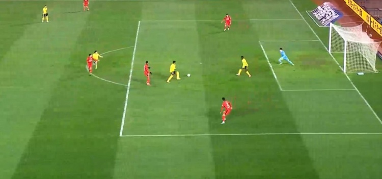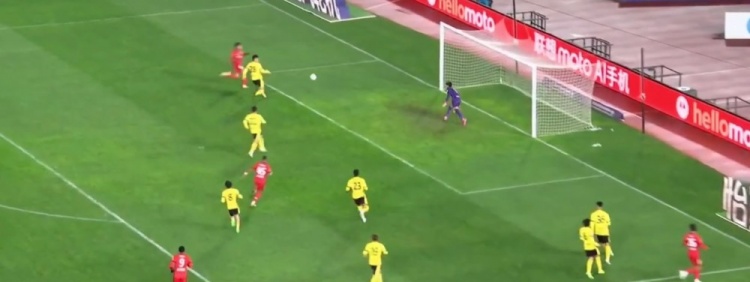 第50分钟,维塔尔45度角斜传到后点,无人盯防的冯劲捅射滑门而过。↓