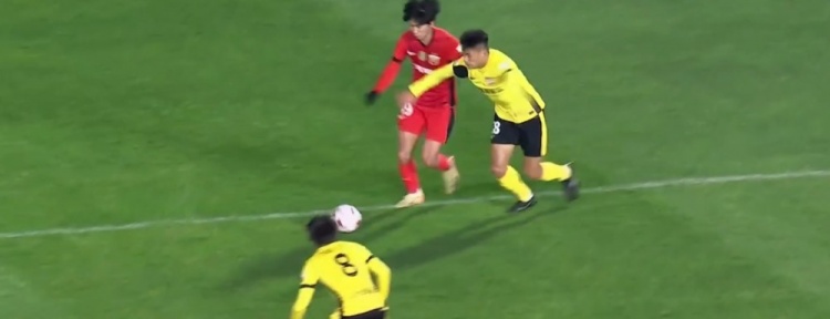 第6分钟,西海岸前场左路抢断后传中,何龙海后点铲射打偏,此球也越位了。↓