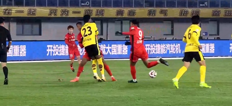 19岁李新翔一线队处子球!海港扳回一城!第25分钟,李新翔单挑防线内切摆脱张呈栋后射门,皮球打在里切利腿上折射入网,门将李昊反应不及,青岛西海岸2-1上海海港!↓