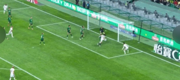 第77分钟,成都蓉城扳平比分!卡隆禁区右路凌空抽射踢呲到门前费利佩巧射破门,国安1-1蓉城。↓