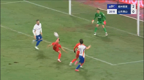 第20分钟,梅州客家再入一球,约契奇送出助攻,杨超声禁区内高难度倒钩破门,梅州客家2-0领先山东泰山。