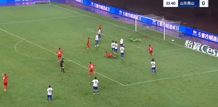 第74分钟,泰山右路传中,泽卡胸部停球后在禁区外直接选择倒钩打门,皮球角度稍正被郭全博稳稳抱住。↓