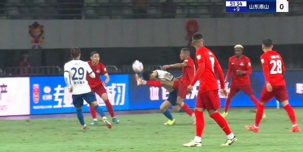 全场比赛结束,山东泰山客场4-3绝杀梅州客家。