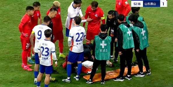 第25分钟,山东泰山的球网出现问题,比赛因此暂停一小会。↓