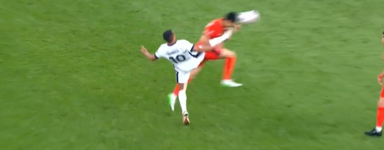 第78分钟,莱昂纳多禁区前沿射门被郭全博扑出,加布里埃尔快速跟进补射打偏后倒地,通过VAR,裁判示意没有点球。↓