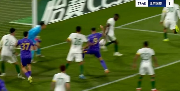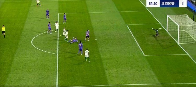 第90+2分钟,国安左侧进攻,杨立瑜起球传中,前点双方都没能顶到,皮球弹地后直接钻入网窝,国安2-2扳平比分↓