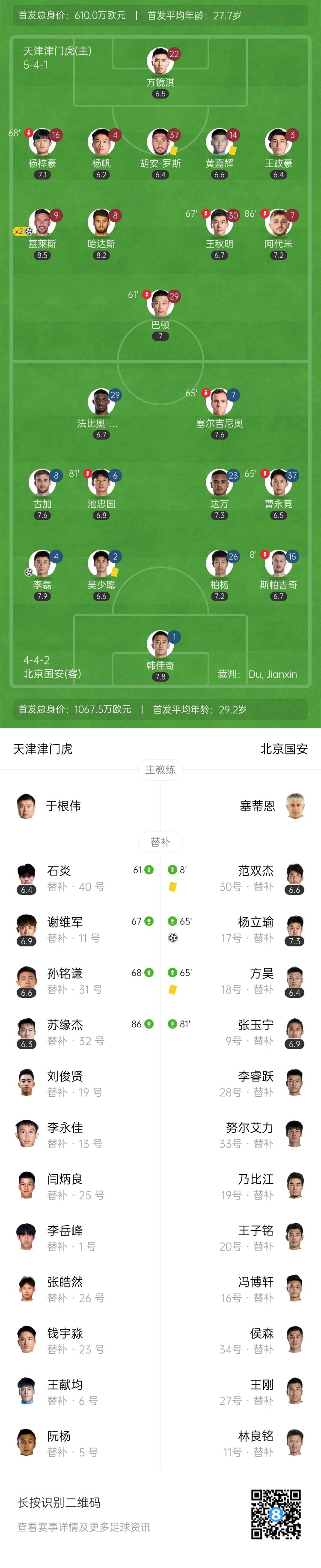 绝平!国安2-2津门虎 基莱斯7分钟双响 李磊传射杨立瑜补时绝平