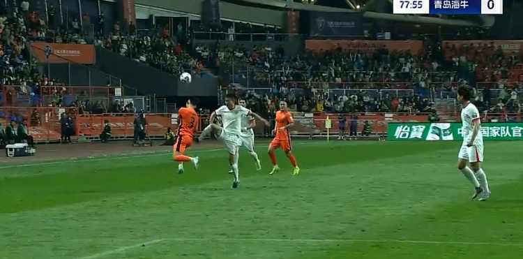 第21分钟,奥斯卡反击即将形成单刀被徐宏杰拉拽倒地,裁判吹罚犯规并对徐宏杰出示黄牌,通过VAR裁判维持原判。↓