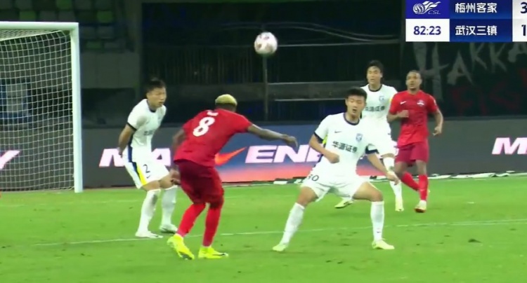 第69分钟,恩戈姆反越位成功抽射破门,边裁第一时间举旗示意越位,但VAR介入后主裁最终判定没有越位进球有效!1-1!梅州客家扳平了比分!↓