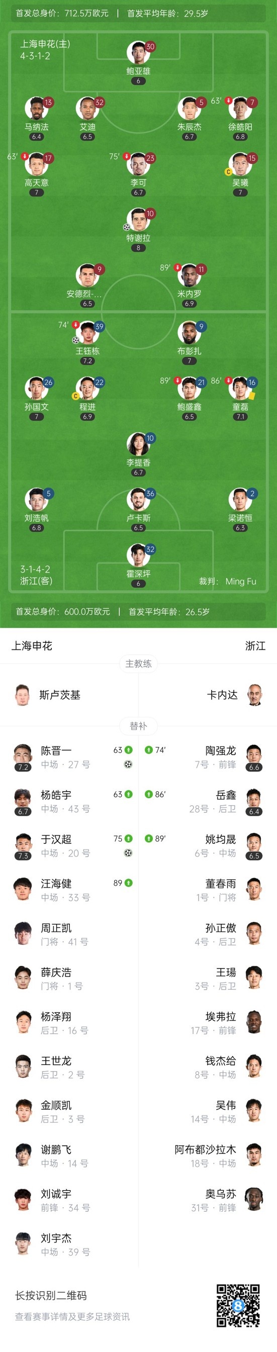 4月12日讯 北京时间4月12日20:00,中超联赛第6轮上海申花迎战浙江队的比赛在上海足球场进行,上半场特谢拉远射世界波首开记录,浙江0射门,半场结束,申花1-0浙江队。下半场吴曦失误王钰栋单刀推射扳平比分,随后鲍亚雄失误送礼,于汉超替补吊射扳平,陈晋一补时绝杀,最终申花3-2浙江赛季不败暂登顶,浙江仍第8。