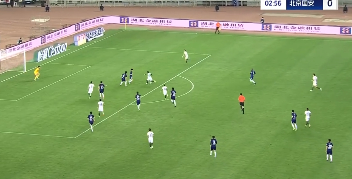 第34分钟,国安左侧角球机会,塞尔吉尼奥禁区内头球破门,北京国安3-1武汉三镇。↓