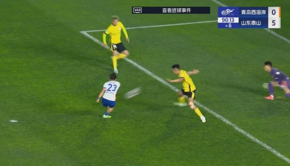 伤停补时8分钟。全场比赛结束,青岛西海岸1-5山东泰山。