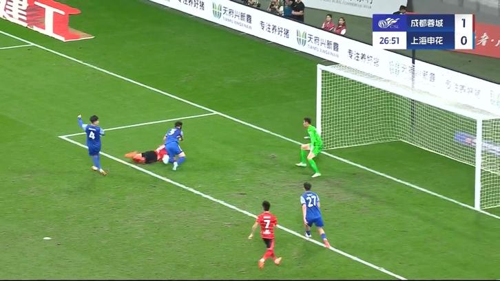 第16分钟,蓉城反击机会,韦世豪中路分边,罗慕洛跟上推射被薛庆浩扑出,随后申花解围不远,韦世豪再打被防守球员挡出底线。↓