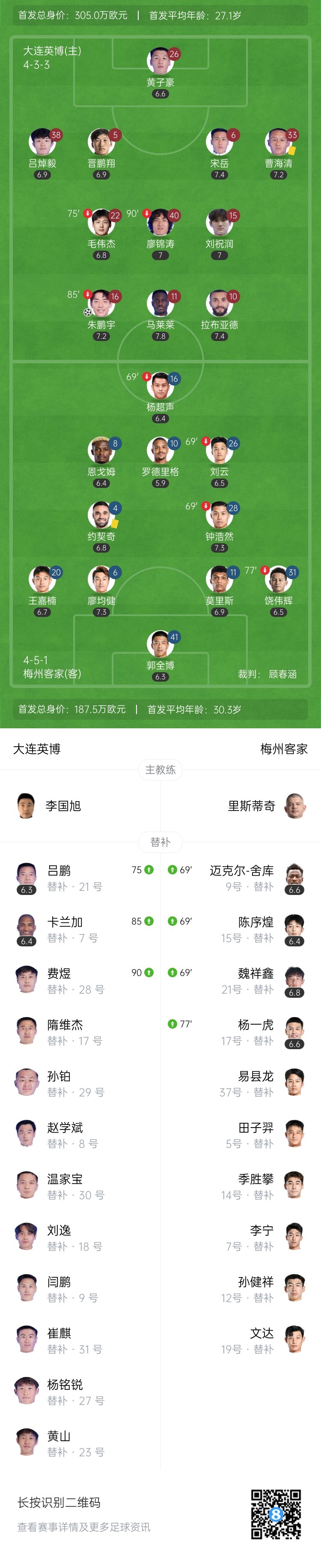 中超-大连英博1-0送梅州客家六连败 马莱莱助攻20岁朱鹏宇制胜