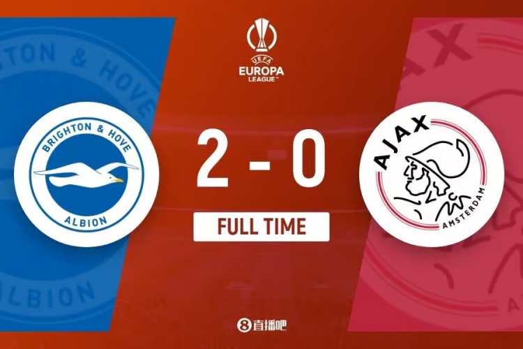 全场比赛结束,布莱顿2-0阿贾克斯。