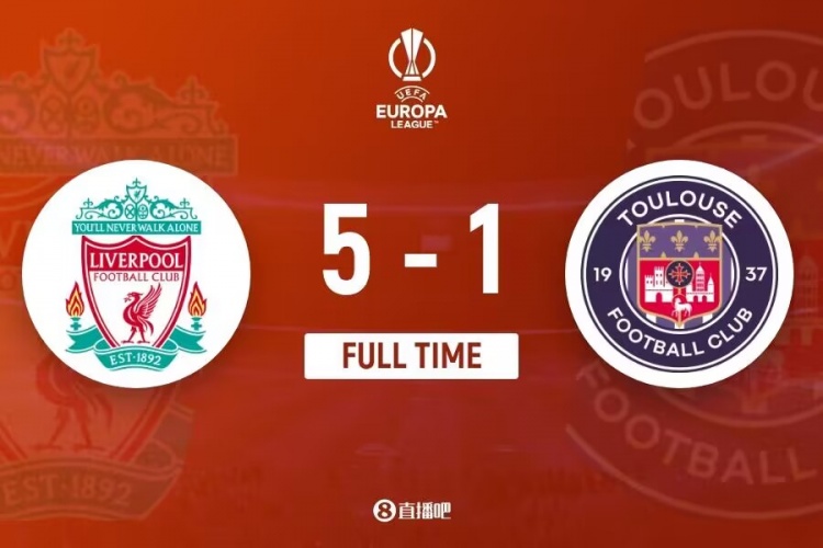 下半场伤停补时3分钟,全场比赛结束,最终利物浦5-1图卢兹。