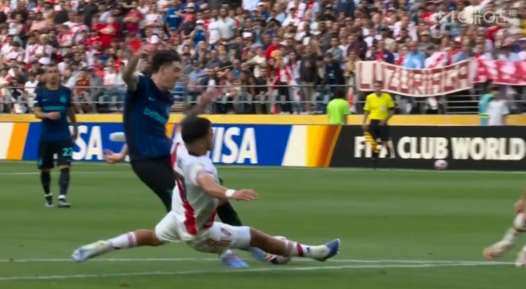 第20分钟,梅萨倒在国米禁区内,主裁判表示没有问题↓