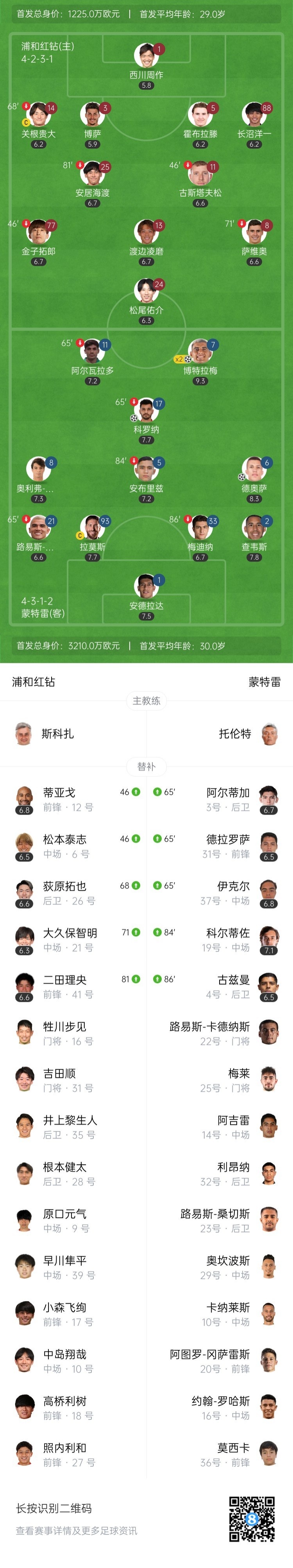 第45+2分钟,蒙特雷前场再来一脚远射,西川周作飞身将球扑出!↓