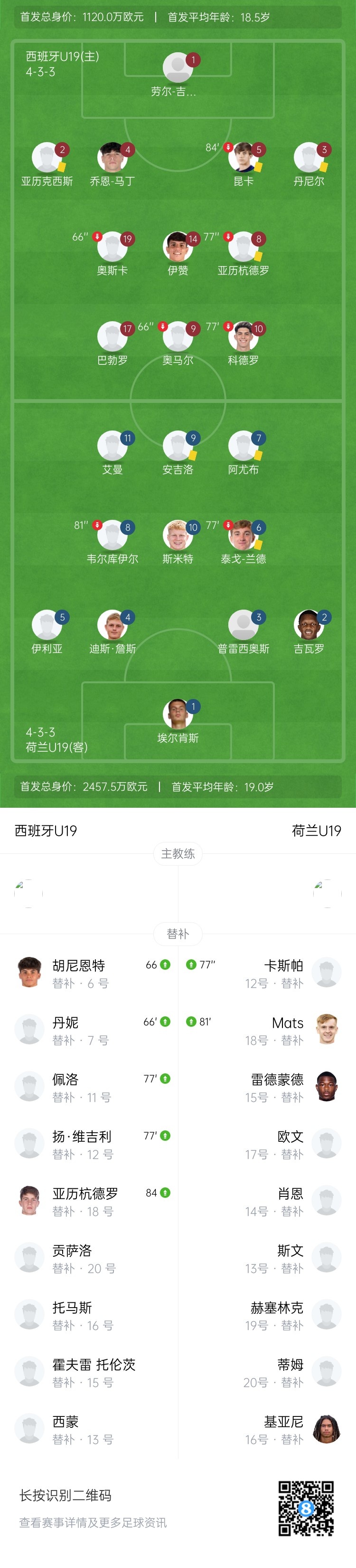 6月27日讯 欧U19决赛 西班牙U19 - 荷兰U19。上半场,阿尤布错失近距离打门良机。易边再战,西班牙两次中框,吉瓦罗造乌龙制胜,最后阶段阿尤布失单刀。最终荷兰1-0西班牙夺得冠军。
