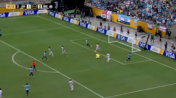 萨维尼奥世界波+传射!第76分钟,曼城的角球机会,哈兰德乱战中打门被迪格雷戈里奥挡出,萨维尼奥外围兜射直挂死角,尤文图斯1-5曼城!↓