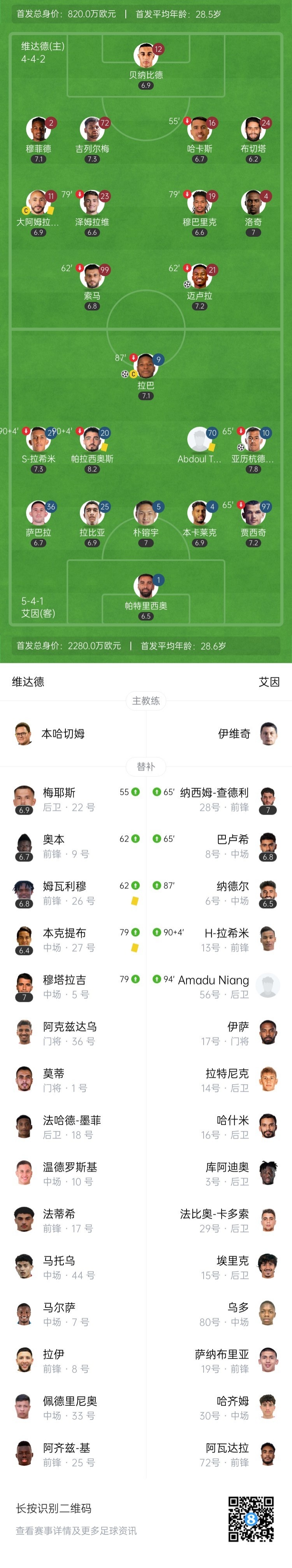 【双方首发及换人信息】