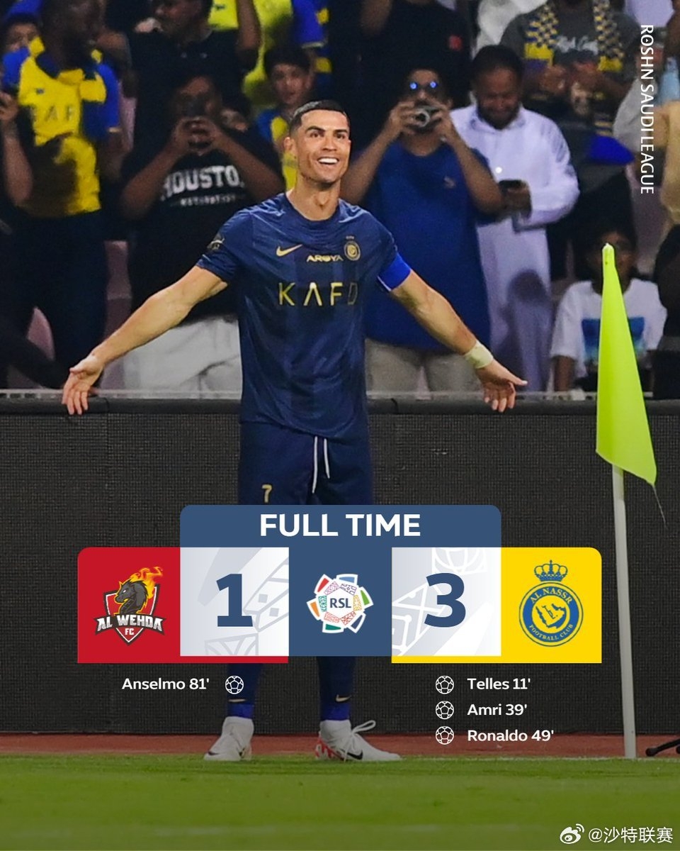 沙特联-C罗破门&本赛季17场16球9助 胜利3-1麦加统一各赛事7连胜