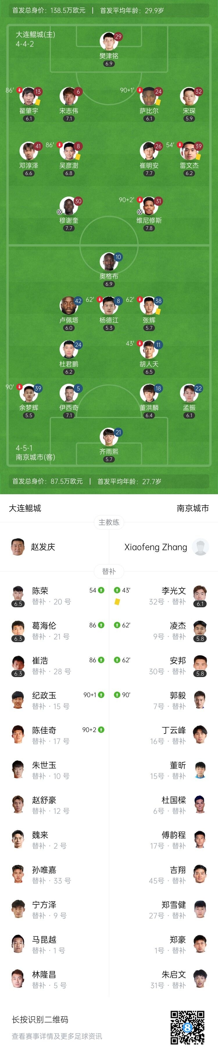 维尼修斯点球命中,大连鲲城3-1南京城市。↓