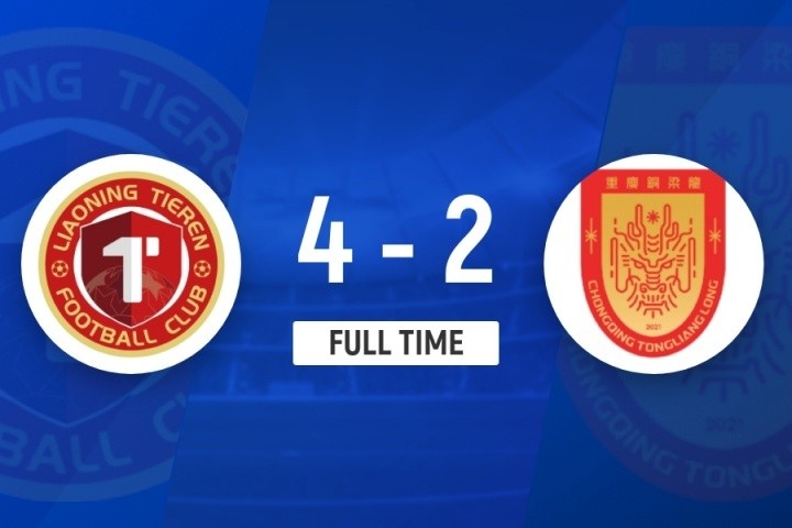 伤停补时9分钟。全场比赛结束,辽宁铁人4-2重庆铜梁龙。