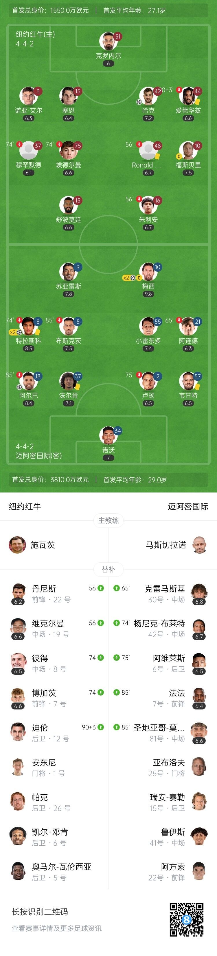 梅西2射1传!迈阿密国际5-1纽约红牛 阿尔巴传射苏牙布教授送助攻