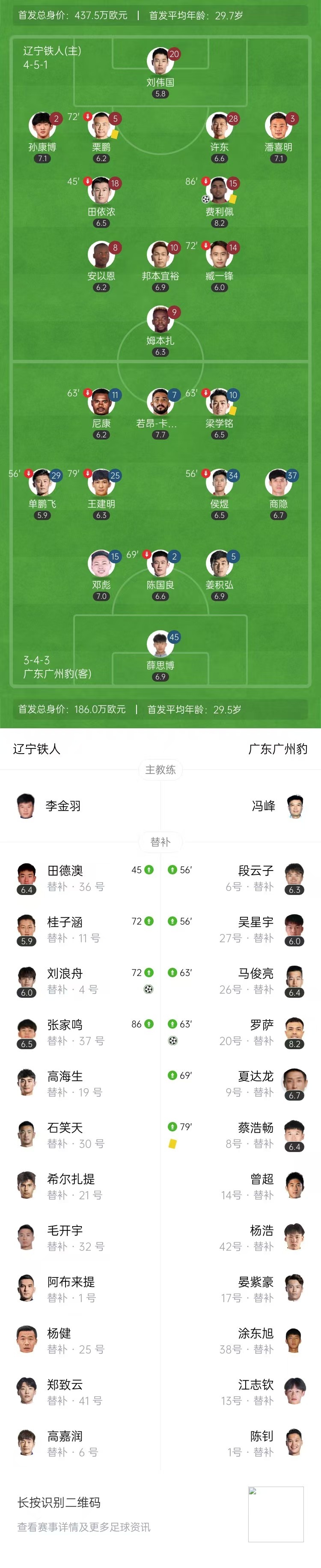 第63分钟,广州豹中场送出直塞,罗萨插上低射得手,VAR确认没有越位进球有效,广东广州豹2-1辽宁铁人。↓