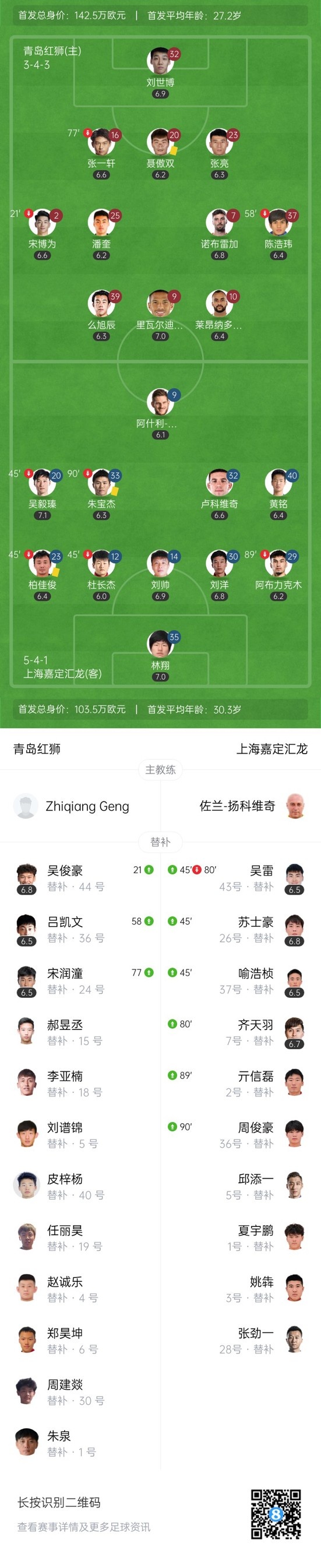 双方首发以及换人信息: