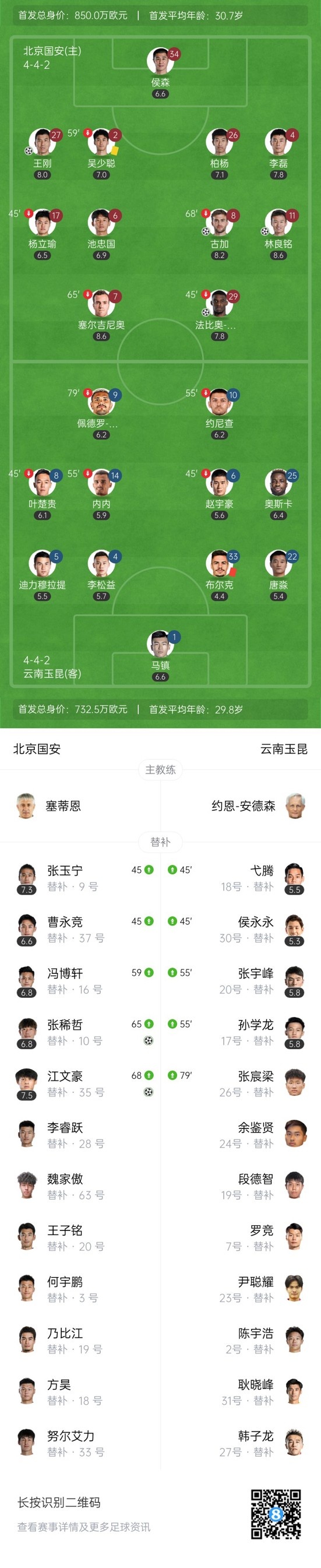 第38分钟,国安扩大比分!王刚右路和塞尔吉尼奥撞墙配合后到禁区小角度爆射破门,国安2-0云南玉昆。↓