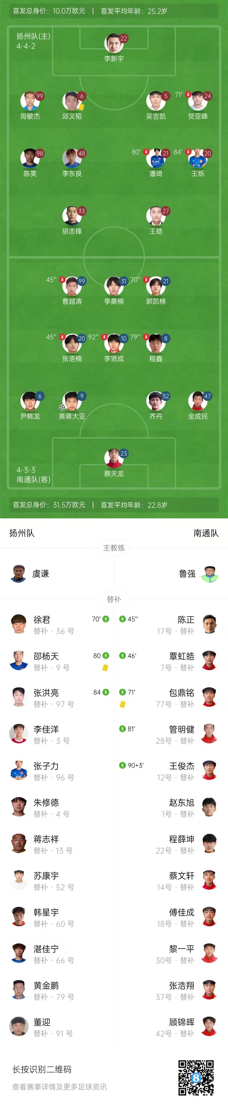 苏超-南通1-0扬州豪取10连胜 黄蒋大亚破门制胜胡志峰进球被吹