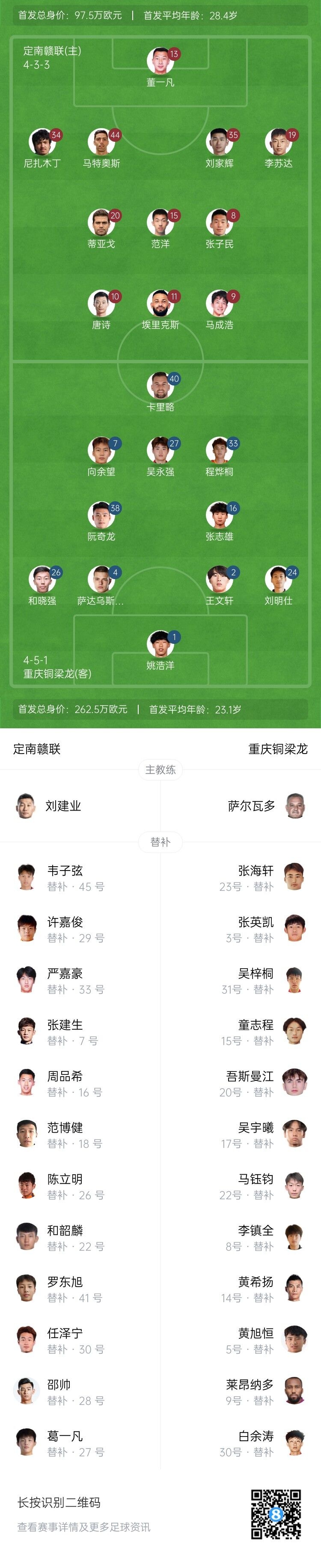 【双方首发以及替补信息】