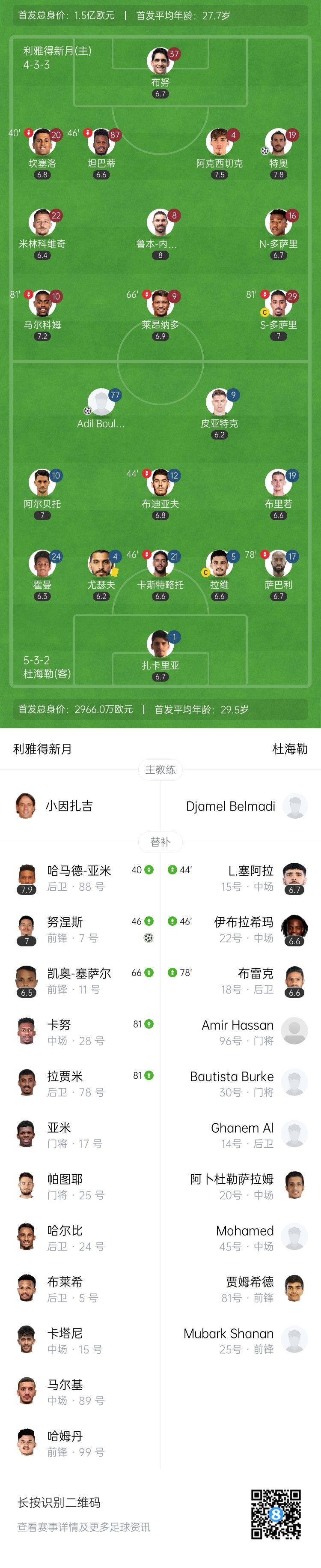 第57分钟,新月右路进攻,哈马德-亚米禁区右侧下底回做,替补登场的努涅斯门前包抄得分,新月1-1扳平比分↓