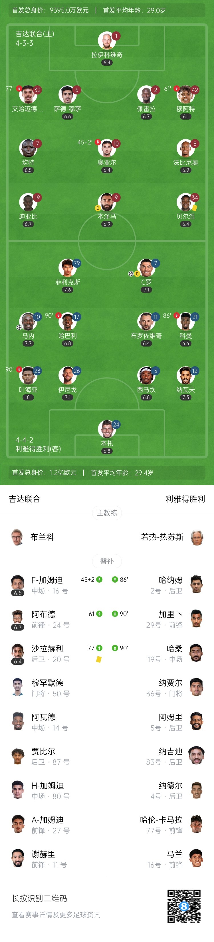第30分钟,迪亚比为吉达联合打进一球,但边裁举旗示意越位在先进球无效↓